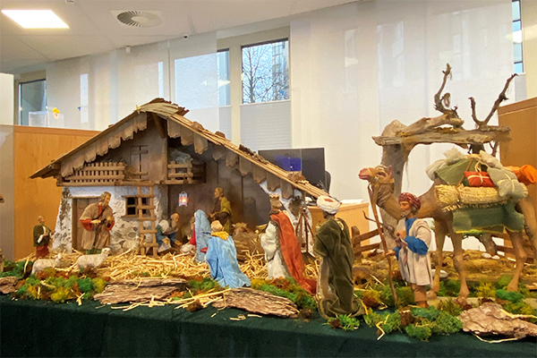 Kunstvoll bekleidet und detailreich geschnitzt wird durch die Krippe die Friedensbotschaft der Heiligen Nacht lebendig: