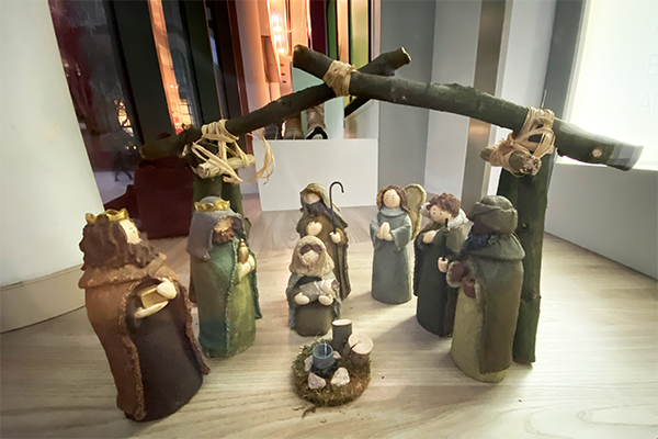 11Die Feuerstelle dieser Textilkrippe leuchtete erst im Haus, dann im Altenheim auf der Fensterbank.